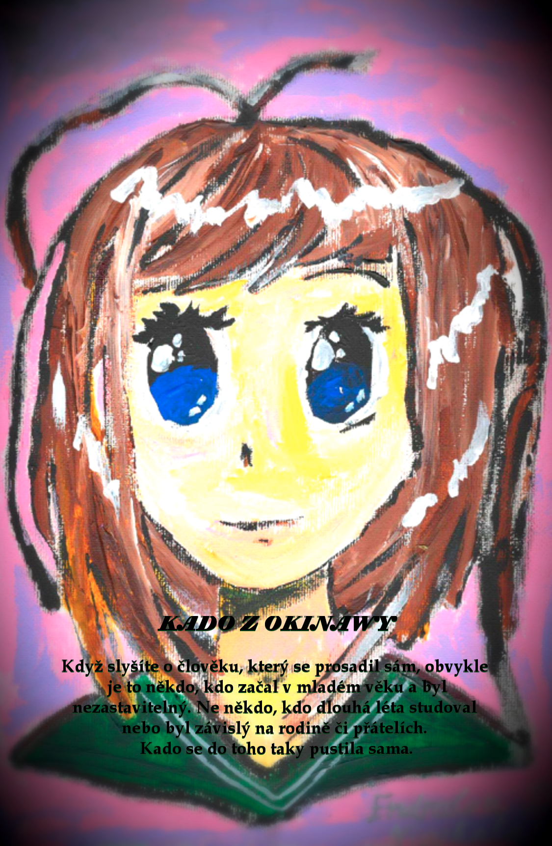 Namaluji tvůj portrét podle fotografie – přiřadím k němu věštbu a postavě dám jméno složené ze dvou slabik. Z jedné slabiky tvého křestního jména a z jedné slabiky tvého příjmení. Zároveň ti tvůj obrázek pošlu v digitální podobě.